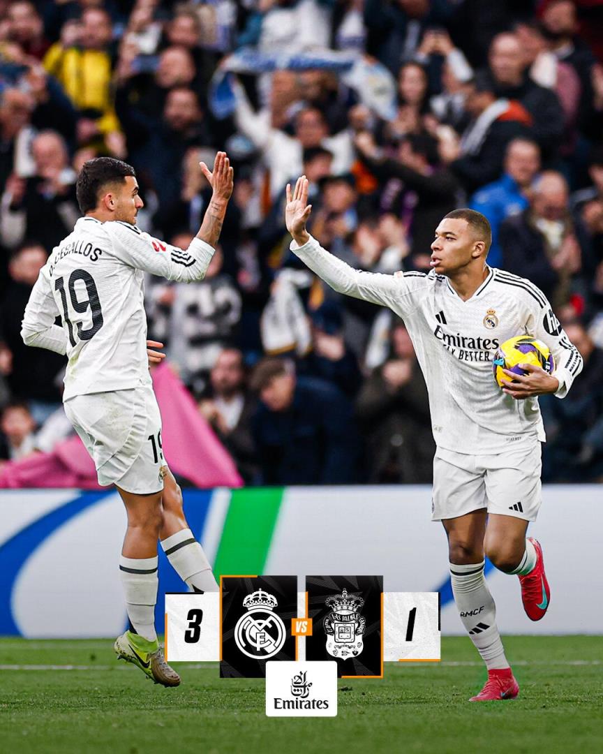 第35分钟,皇马扩大比分!罗德里戈左路横传点球点附近姆巴佩不停球直接抽射破门,皇马3-1拉斯帕尔马斯。↓