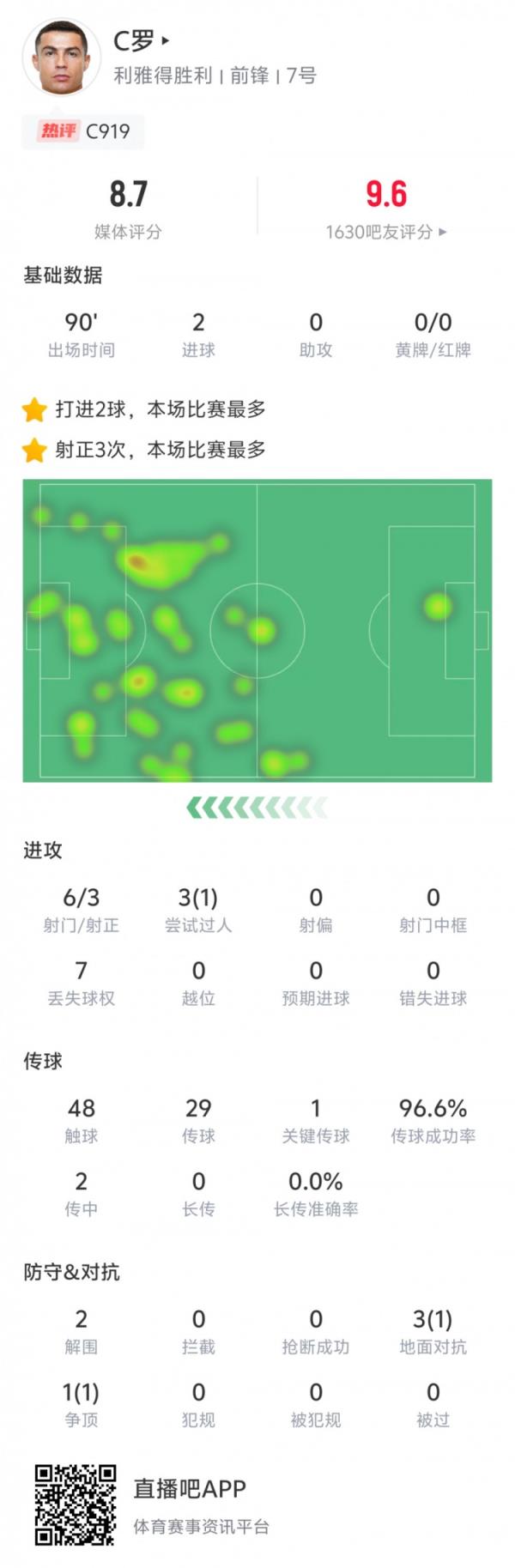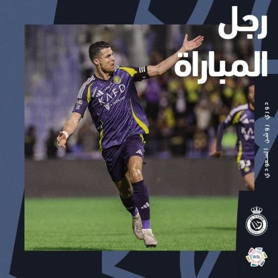 1月22日讯 本轮沙特联,利雅得胜利3-1卡利杰,39岁的C罗完成梅开二度。赛后,C罗当选全场最佳球员。