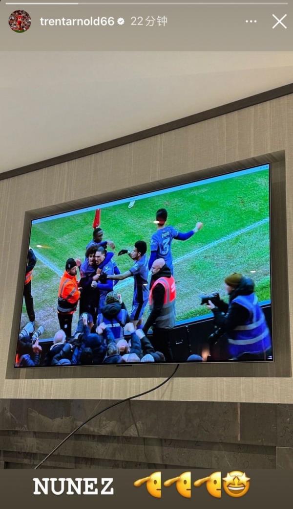 阿诺德晒出努涅斯进球后庆祝的画面,并写道:努涅斯