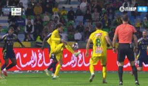 01月22日讯 沙特联第16轮,利雅得胜利客场挑战卡利杰,比赛第79分钟,卡利杰球员禁区内倒钩打在奥贾米的手臂上,卡利杰球员福图尼斯点球破门,1-1扳平比分。