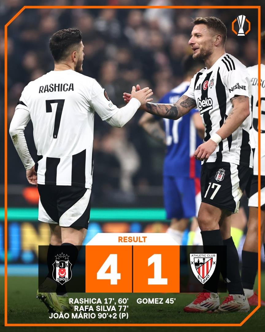 本场取胜后,贝西克塔斯欧联中3胜4负,先赛暂以9分排名第18。毕尔巴鄂本赛季欧联杯遭遇首败,5胜1平1负暂排第二。
