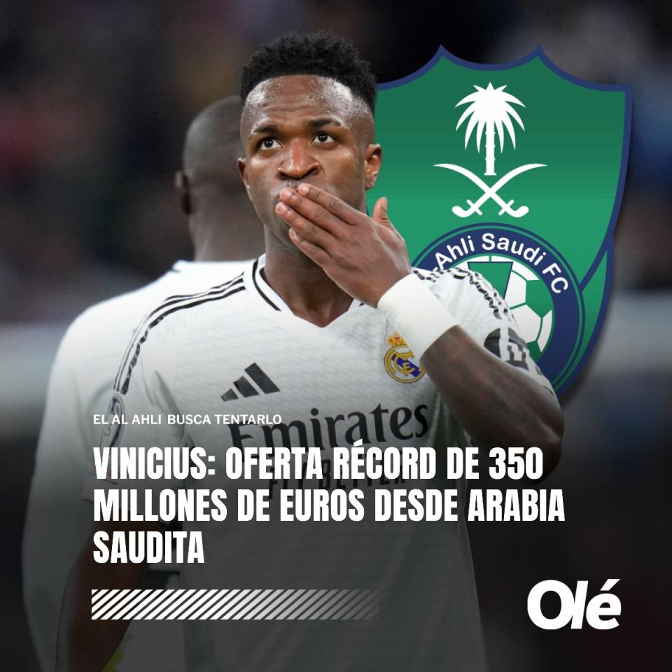 01月24日讯 奥莱报消息,吉达国民准备在夏窗为维尼修斯报价3.5亿欧,这个金额大幅超过了内马尔此前2.22亿欧的纪录。