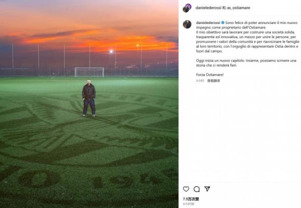 1月25日讯 罗马名宿德罗西在今日通过社媒自宣,成为罗马业余俱乐部奥斯蒂亚马雷的新老板。