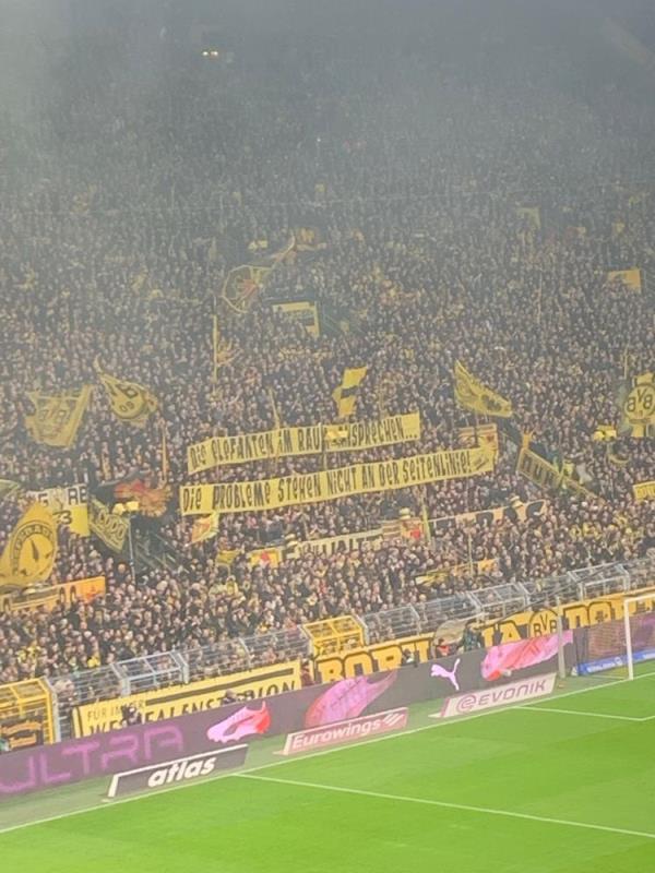 1月26日讯 本轮德甲比赛中,十人作战的多特2-2战平不莱梅。比赛中,多特球迷拉出横幅,要求俱乐部管理层解决问题。