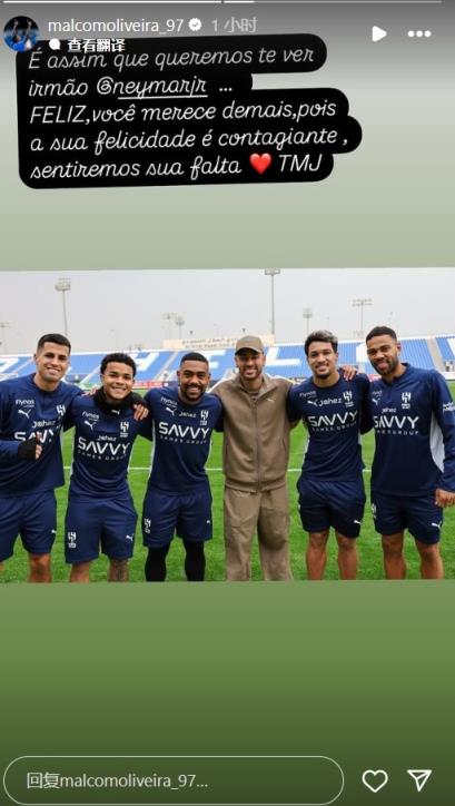 1月29日讯 利雅得新月官方宣布,和内马尔已经协商解约。效力利雅得新月的巴西边锋马尔科姆更新动态,告别了内马尔。