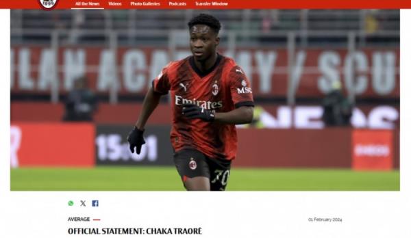 查卡-特拉奥雷在2021年以60万欧转会费加盟米兰,一共代表米兰一线队出场过4次,打进2球。此前迪马济奥消息称,买断费用是1000万欧。