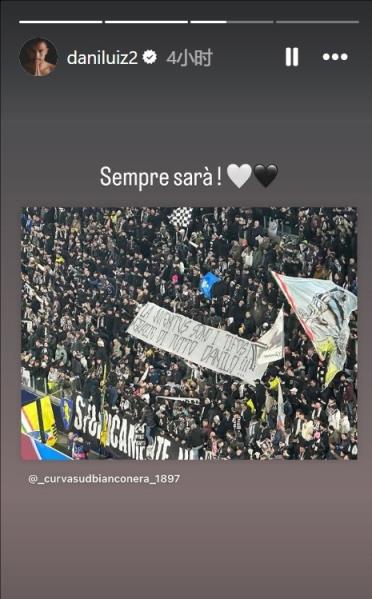 在尤文0-2输给本菲卡的比赛中,尤文球迷在看台拉出横幅致敬离队的前队长达尼洛,该横幅写道:“尤文图斯属于球迷,感谢你做的一切,达尼洛。”