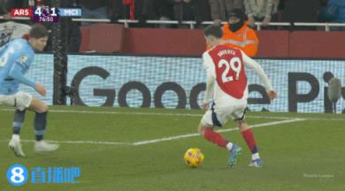02月03日讯 英超阿森纳大战曼城,比赛第76分钟,枪手杀死比赛!哈弗茨破门滑跪庆祝,阿森纳4-1领先曼城!