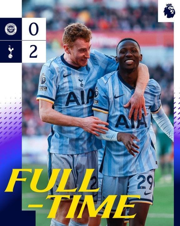 2月3日讯 热刺在本轮英超2-0布伦特福德,结束了一波7轮不胜。