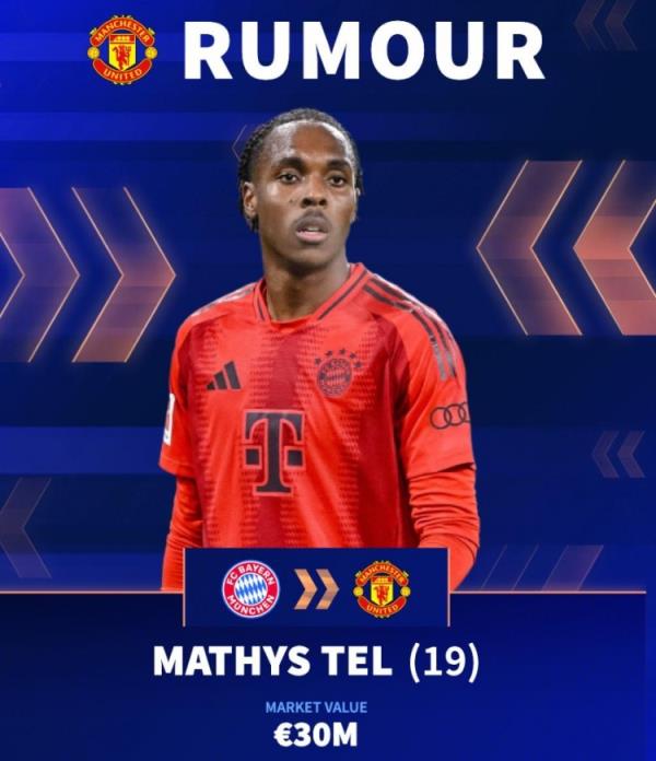 该记者透露:“曼联在关窗前预计不会再有引援。拜仁对特尔索要500万英镑的租借费,曼联对此感到犹豫,尤其是特尔还是一名尚未真正证明过自己的19岁前锋,这笔费用太贵了。”