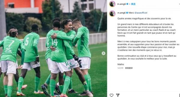 2月5日讯 切尔西已经官宣签下圣埃蒂安小将马蒂斯-阿穆古,后者也通过社媒发文告别母队。
