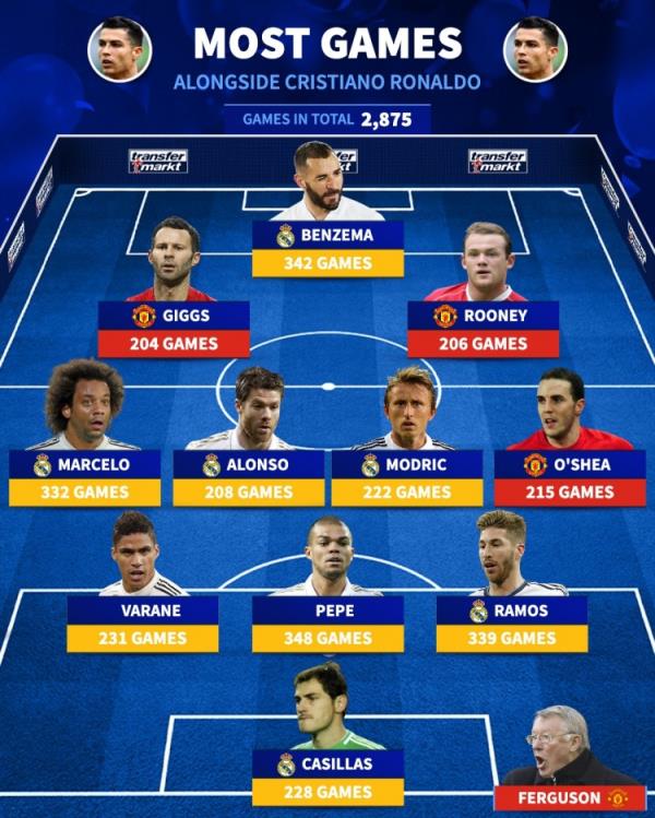 和C罗一起出场次数最多的阵容↓