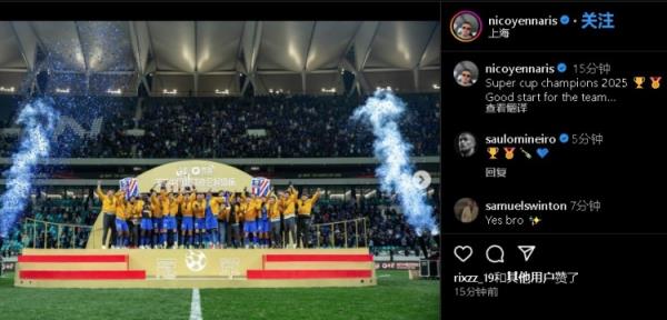 李可社媒:2025年超级杯夺冠,这是球队的完美开局。