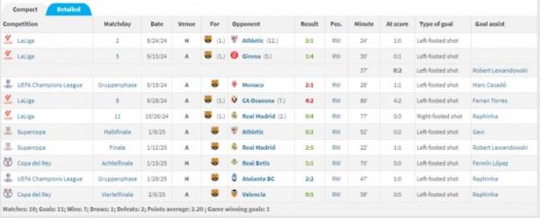 亚马尔上一次在西甲联赛进球已经是去年10月,他在对阵皇马的国家德比破门,此后他在联赛还没有进过球。