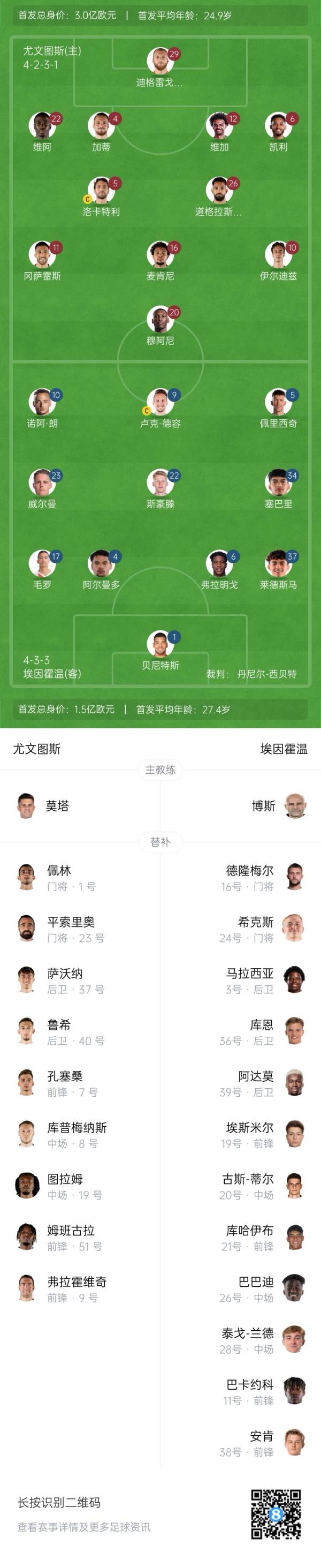 2月12日讯 欧冠淘汰赛附加赛首回合,尤文主场迎战埃因霍温比赛即将打响。赛前首发出炉。