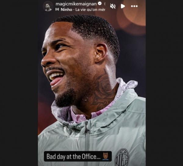 迈尼昂也在今日通过社媒晒出自己的苦笑照,并配文:“办公室里的糟糕一天……”