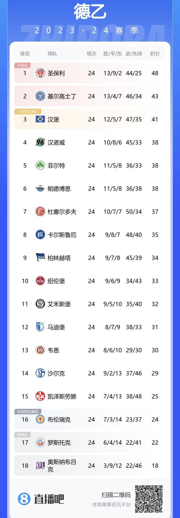 【德乙积分榜】