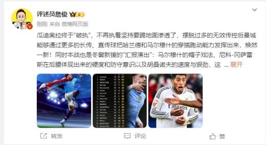 02月16日讯 曼城4-0大胜纽卡,皇马遭遇争议判罚1-1战平奥萨苏纳。赛后,詹俊发文点评。