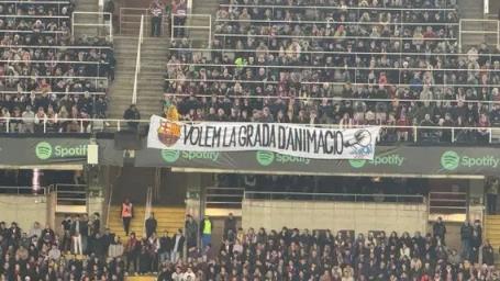 西媒称,原巴萨助威看台已被关闭9场比赛,一名女球迷通过藏在腰间的方式将长约10米的横幅带入球场,并在第12分钟象征性地展示。横幅展示4分钟后被保安要求撤下,参与者的证件信息被记录在案。