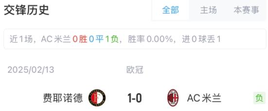 2月19日讯 欧冠淘汰赛附加赛次回合,AC米兰主场迎战费耶诺德比赛即将打响。赛前首发出炉。首回合对阵,费耶诺德1-0米兰。