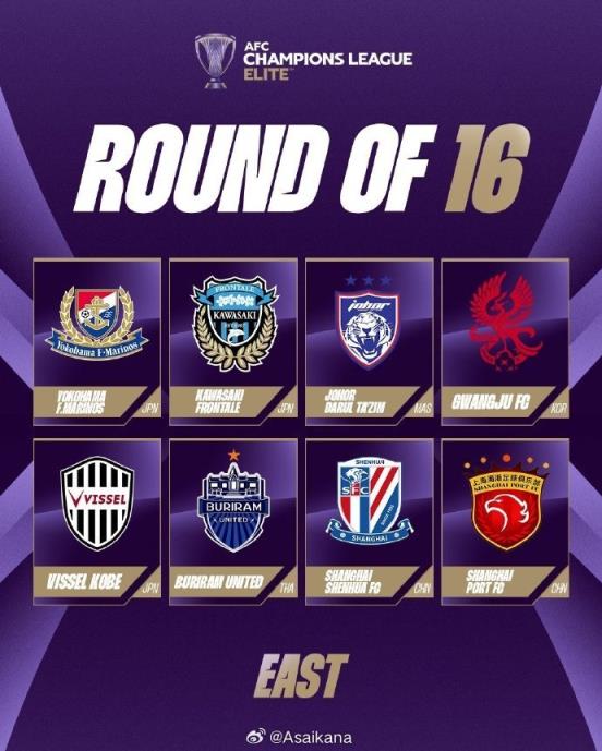 亚冠精英联赛16强产生。上海申花、上海海港晋级16强赛。16强赛将进行主客场两回合比赛,根据亚冠精英联赛规程既定对阵,联赛阶段获得第8名的上海海港将再战联赛阶段头名横滨水手,第7名上海申花将对阵川崎前锋。比赛将在3月上旬和中旬进行,突围的东西亚球队将集体前往沙特,在4月进行最终的赛会制决战。