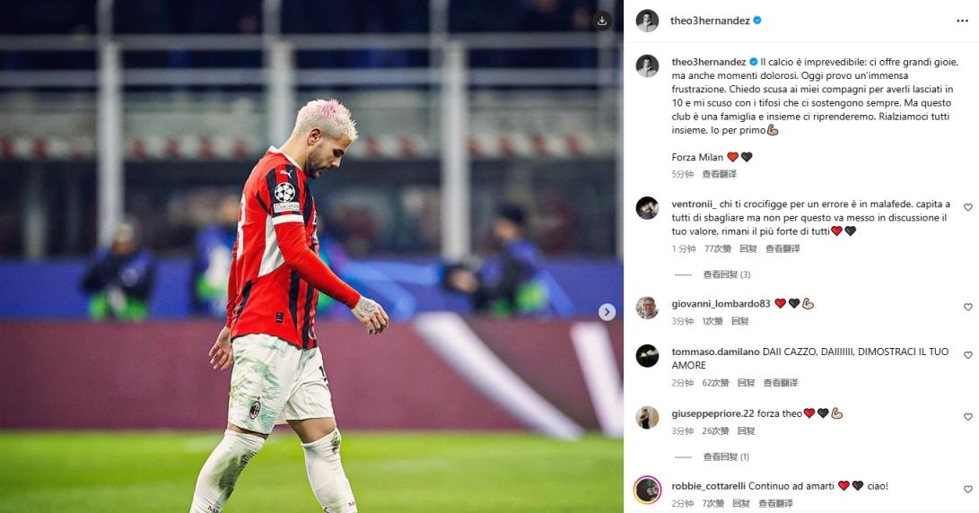 特奥:“足球是不可预测的,它带给我们巨大的快乐,也有痛苦时刻。今天我感到无比的沮丧。我向我的队友们道歉,因为我让他们只剩下10个人作战。我也向一直支持我们的球迷们道歉。但这个俱乐部就像是一个大家庭,团结一致我们会恢复的。让我们一起重新站起来,从我开始。