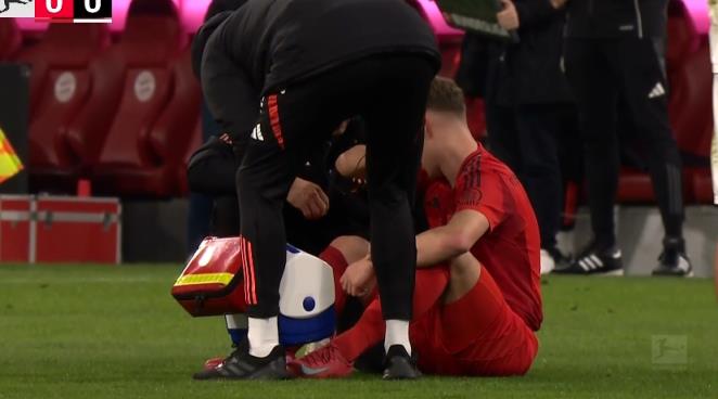02月24日讯 拜仁vs法兰克福第43分钟,基米希坐在地上无法坚持!格雷茨卡登场!