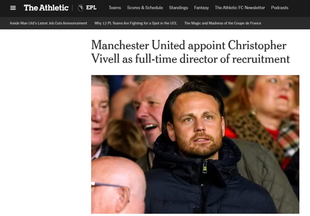 2月25日讯 据《Theathletic》报道,曼联任命克里斯托弗-维维尔(Christopher Vivell)为全职招聘总监,此前他曾临时担任该职位。