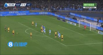 3月2日讯 意甲第27轮,那不勒斯主场vs国际米兰,比赛第22分钟,迪马尔科远距离任意球直挂死角。