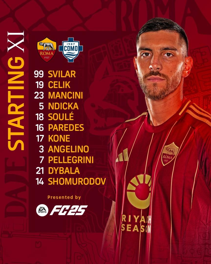 3月3日讯 意甲第27轮比赛,罗马在主场迎战科莫。目前,罗马首发已经出炉,迪巴拉领衔,帕雷德斯、苏莱出战。