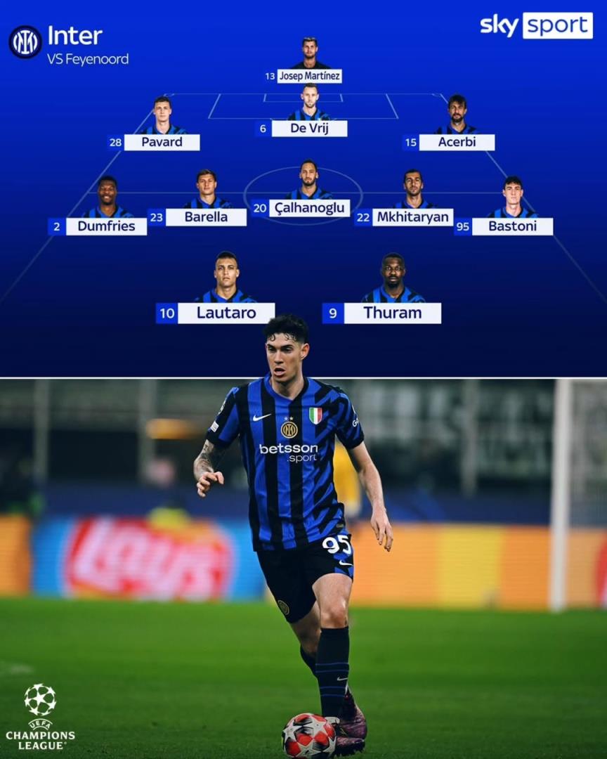 3月5日讯 本周四凌晨1:45,欧冠1/8决赛首回合,国米将在客场对阵费耶诺德。赛前,意大利天空体育预测了国米的首发阵容。
