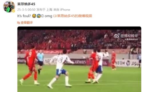 莱昂纳多晒进球视频质疑:“这是犯规?