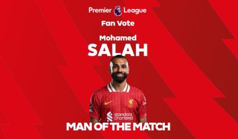 萨拉赫本场5次射门2次射正,另有6次关键传球。英超官方也在赛后宣布,他被球迷票选为本场比赛的全场最佳球员。