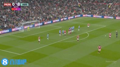 第45+2分钟,B费主罚任意球,他选择直接攻门,这球轰出世界波直奔球门死角,拉亚鞭长莫及,曼联1-0阿森纳。