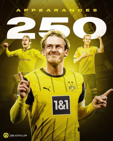 3月13日讯 欧冠1/8决赛次回合,多特与里尔的比赛,多特28岁中场布兰特首发出战,此役也迎来他多特生涯各项赛事第250场比赛。