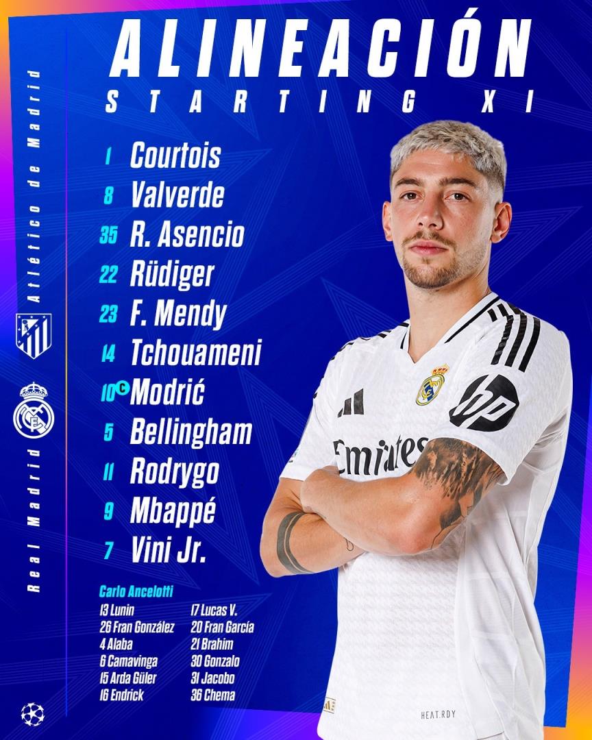 皇马替补:13-卢宁、26-弗兰-冈萨雷斯、4-阿拉巴、20-弗兰-加西亚、31-雅各布-拉蒙、6-卡马文加、15-居勒尔、36-切玛、16-恩德里克、17-巴斯克斯、21-迪亚斯、30-冈萨洛-加西亚