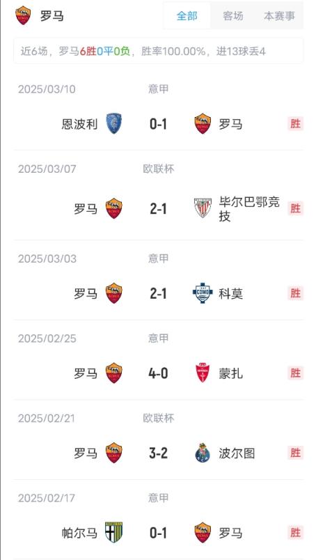 罗马首发:99-斯维拉尔、5-恩迪卡、15-胡梅尔斯、23-曼奇尼、3-安吉利诺、16-帕雷德斯、4-克里斯坦特、2-伦施、35-巴尔丹齐、21-迪巴拉、11-多夫比克