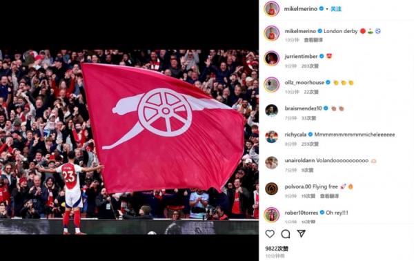 梅里诺也在赛后通过社媒晒出自己的庆祝照,并配文:“伦敦德比