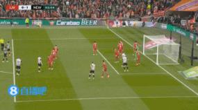 3月17日讯 联赛杯决赛,纽卡斯尔联vs利物浦,比赛进入上半场补时阶段,丹-伯恩远距离头球入网,纽卡斯尔联1-0领先利物浦。