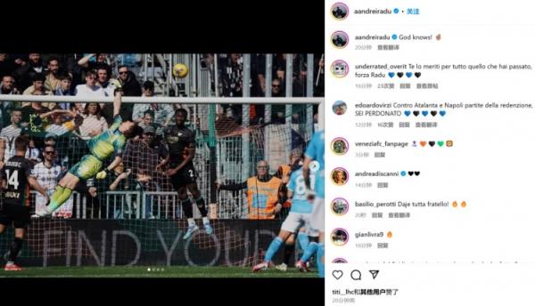 他也在赛后通过社媒晒出比赛照庆祝并配文:“只有上帝明白!”。拉杜在此前效力国米时,曾因为争冠关键战失误导致球队最终未能夺得冠军。