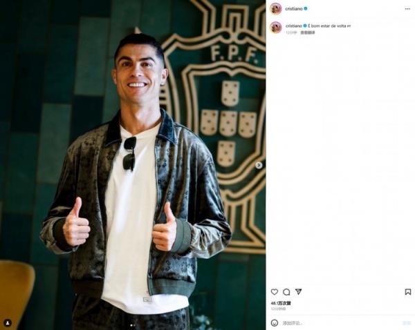 C罗抵达葡萄牙国家队,在社媒晒出照片,写道:回来真好