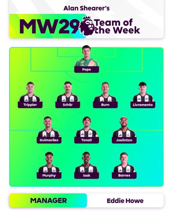 在昨天结束的联赛杯决赛中,纽卡2-1击败利物浦,时隔70年再次夺冠。英超官方也调侃道,对于纽卡名宿希勒来说,本轮的最佳阵容只有一个,那就是纽卡在联赛杯决赛中的首发阵容。