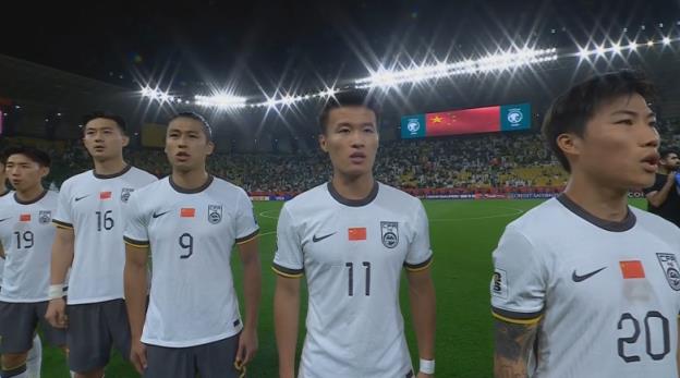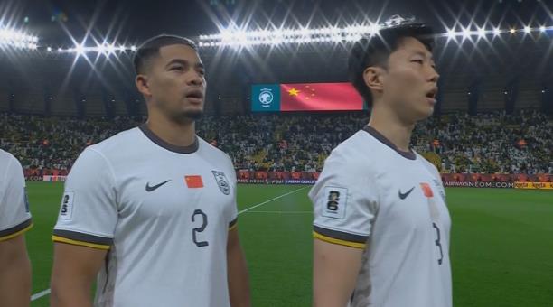 03月21日讯 国足vs沙特比赛即将开始,赛前国歌仪式,国足首发11人高唱国歌!