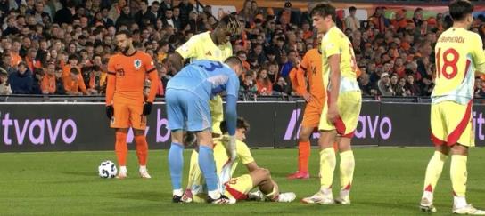 3月22日讯 欧国联1/4决赛首回合比赛,西班牙客场2-2战平荷兰。库巴西在第41分钟因伤被换下场。