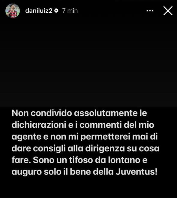 对此,达尼洛本人写道:“我绝对不同意我经纪人的言论和评价,我自己也绝不会向管理层提供任何建议。即使身在远方,我仍然是尤文的球迷,我只希望尤文一切顺利。”