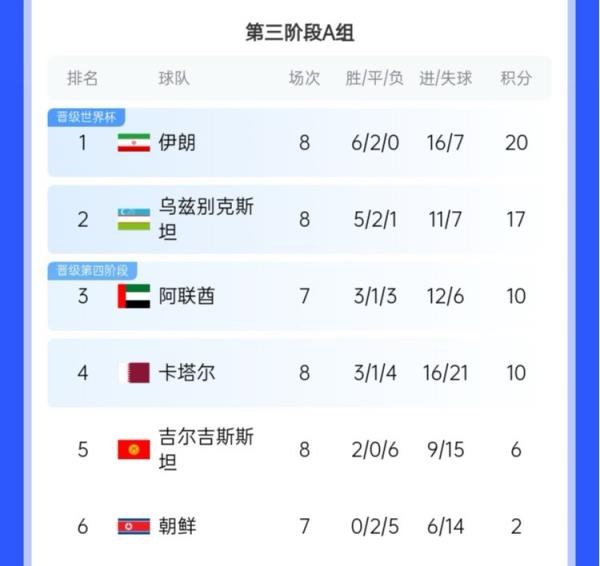 伊朗也成为第三支通过预选赛晋级2026世界杯的球队。