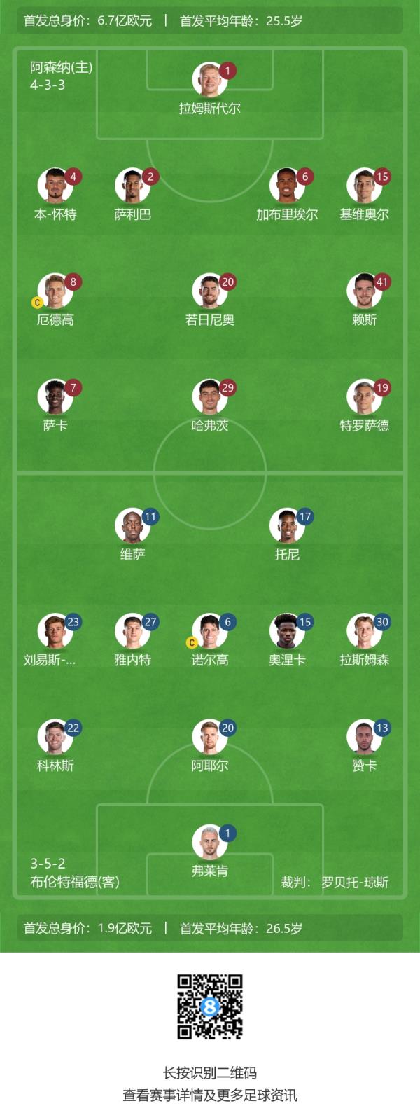 3月10日讯 北京时间01:30,英超第28轮,阿森纳主场迎战布伦特福德。赛前,双方公布首发名单。