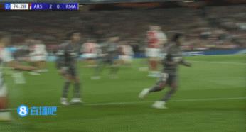 4月10日讯 在欧冠淘汰赛阿森纳3-0击败皇马的比赛中,梅里诺打进球队第三粒进球。