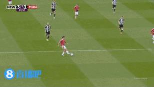 04月14日讯 英超第32轮,纽卡斯尔vs曼联,比赛第63分钟,马兹拉维滑倒送礼,巴恩斯断球推进破门,纽卡3-1领先。