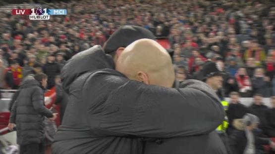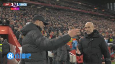 3月11日讯 英超第28轮焦点战,利物浦主场1-1战平曼城。裁判吹响终场哨后,克洛普走向瓜迪奥拉,二人长时间相拥。